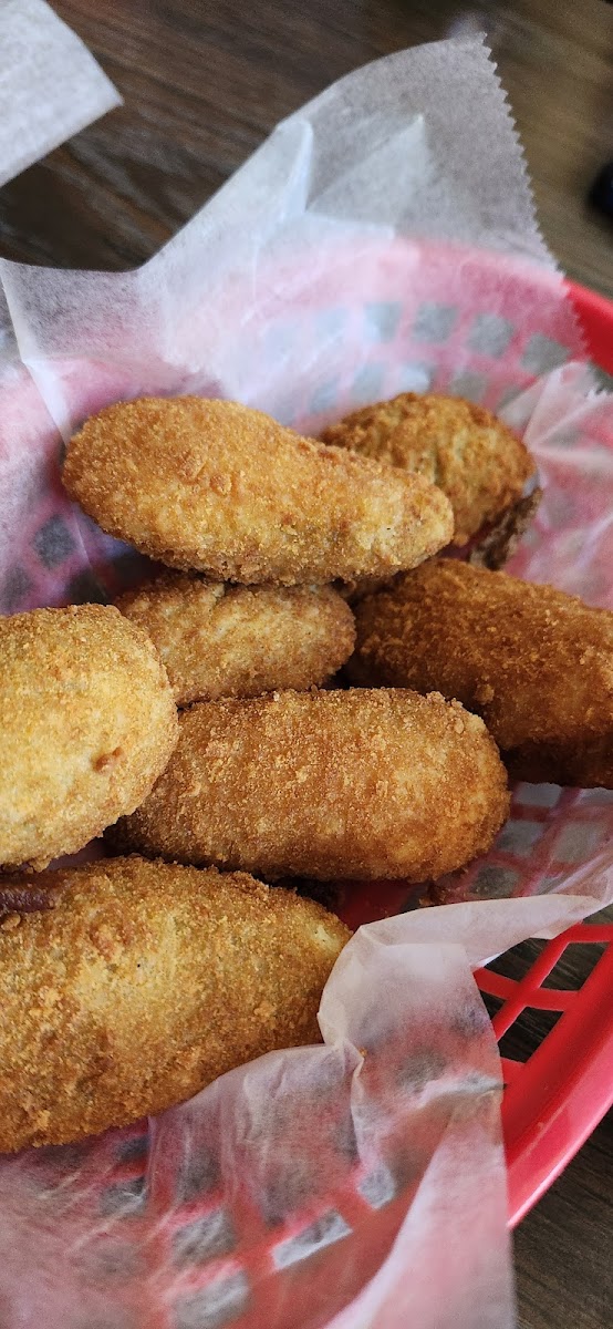 Hole in the wall, iconic place. Staff is social and friendly talking about the local area and attractions. Even other customers were friendly and fun. Rustic inside & outside. All food delicious. Hard-to-find wing dings are here. Cold beer with a standing only bar!
